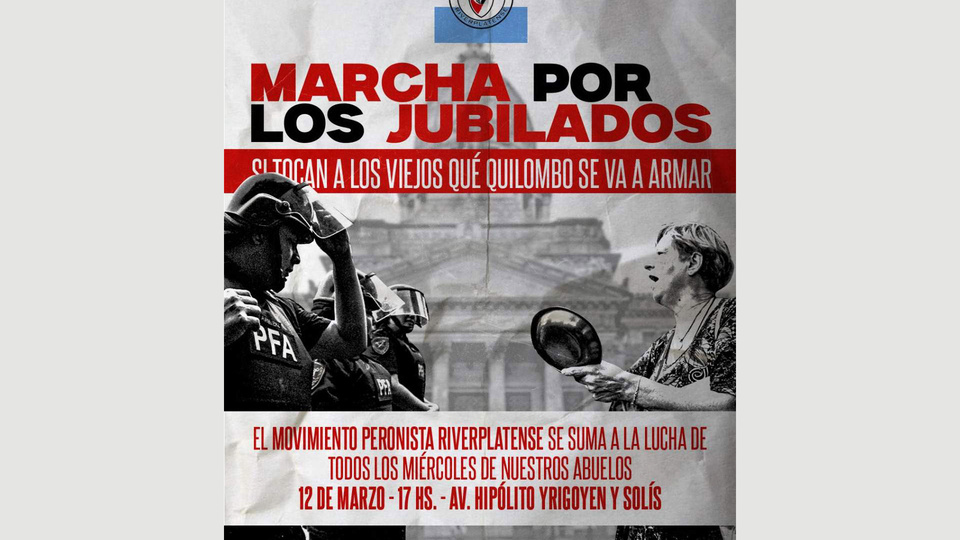 “Si tocan a los viejos qué quilombo se va a armar”, se lee en el anuncio del Movimiento peronista riverplatense. También anunciaron presencia hinchas de Boca que, en su flyer, citan la ya mencionada frase de Diego Maradona en defensa de los jubilados.